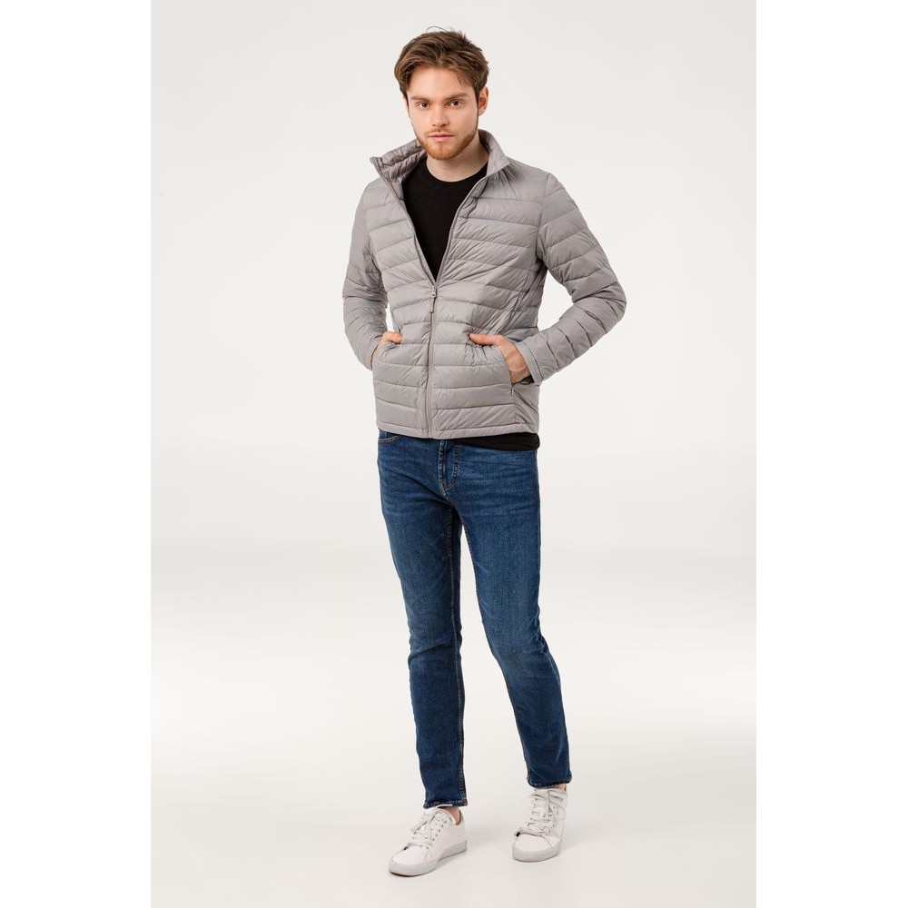 Легкая стеганая куртка облегающего кроя на молнии с воротником-стойкой.