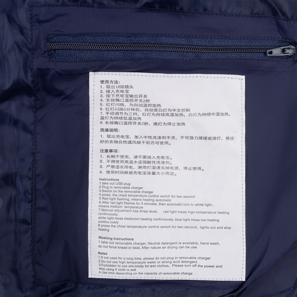 Утепленная куртка со встроенным нагревательным элементом из углеродного волокна в области спины и шеи. Работает от внешнего аккумулятора (в комплект не входит), подарит ощущение тепла и комфорта в любую погоду.