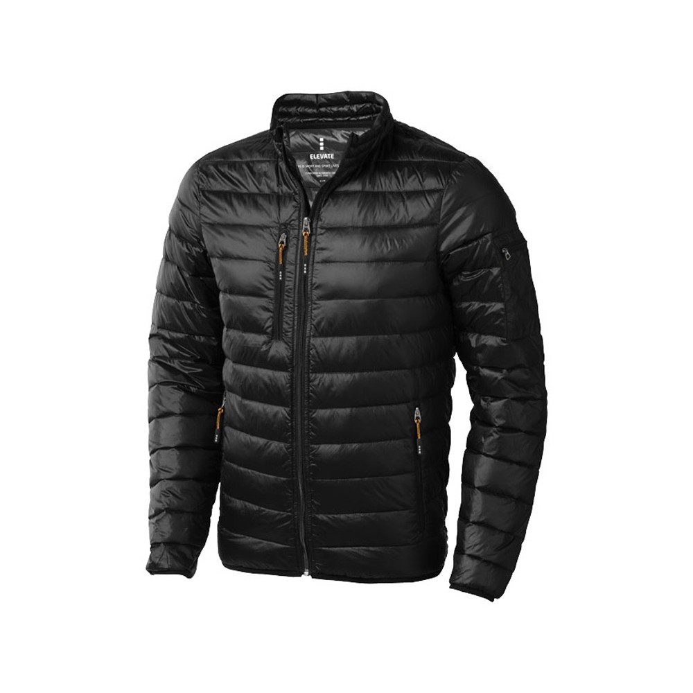 Легкая куртка Scotia. Стандартный покрой. Ткань не пропускает пух. Карманы для рук и нагрудный на молнии. Карман на рукаве на молнии можно использовать для нанесения. Резинка на манжетах и внизу куртки. Ремешки на собачку (второй комплект в цвете антрацит). Внутренний противоветровой клапан и защита подбородка. Ткань дышащая, ветронепроницаемая и влагоотталкивающая. Отражающий лого сзади. Легкий пуховик. Ткань из 100% нейлона с матовым и блестящим водоотталкивающим покрытием, 20D. 80% пух и 20% перо. 115 г/м².