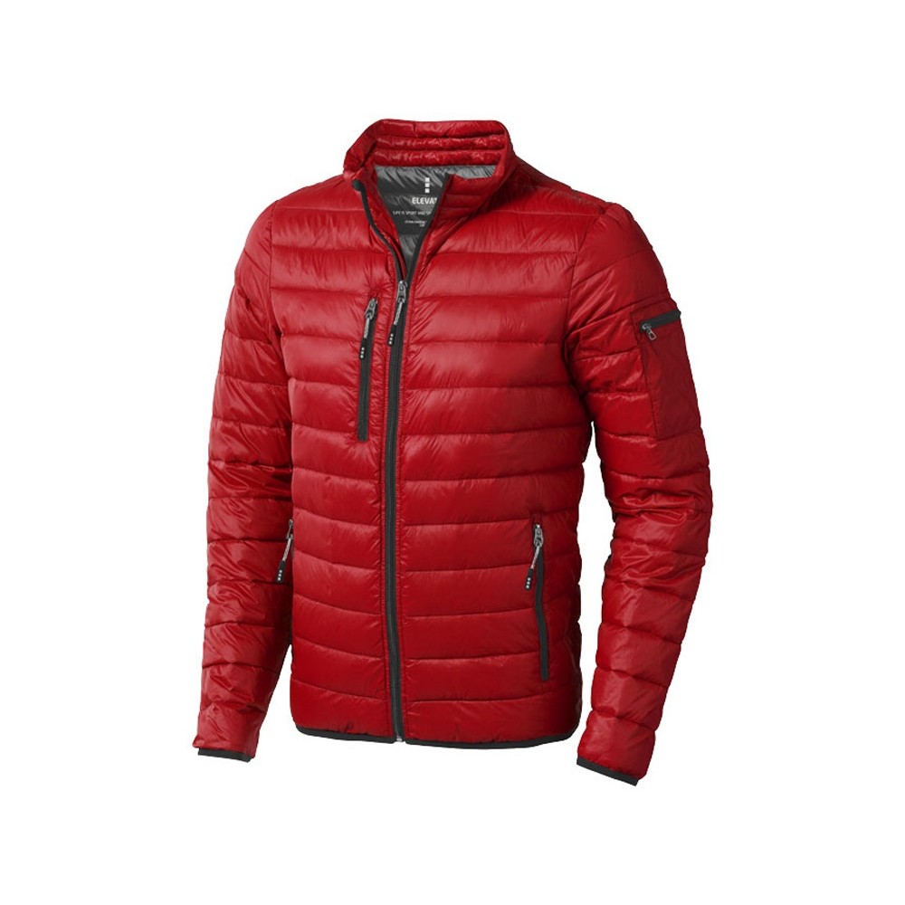 Легкая куртка Scotia. Стандартный покрой. Ткань не пропускает пух. Карманы для рук и нагрудный на молнии. Карман на рукаве на молнии можно использовать для нанесения. Резинка на манжетах и внизу куртки. Ремешки на собачку (второй комплект в цвете антрацит). Внутренний противоветровой клапан и защита подбородка. Ткань дышащая, ветронепроницаемая и влагоотталкивающая. Отражающий лого сзади. Легкий пуховик. Ткань из 100% нейлона с матовым и блестящим водоотталкивающим покрытием, 20D. 80% пух и 20% перо. 115 г/м².
