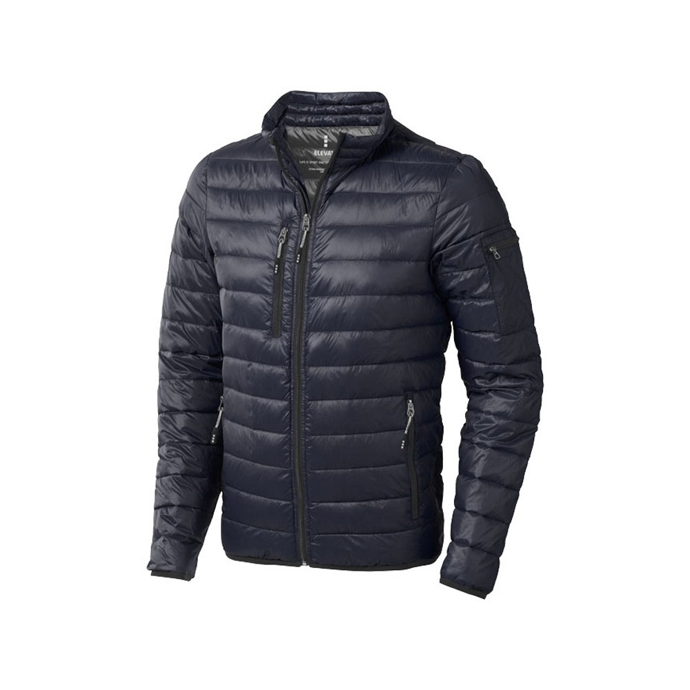 Легкая куртка Scotia. Стандартный покрой. Ткань не пропускает пух. Карманы для рук и нагрудный на молнии. Карман на рукаве на молнии можно использовать для нанесения. Резинка на манжетах и внизу куртки. Ремешки на собачку (второй комплект в цвете антрацит). Внутренний противоветровой клапан и защита подбородка. Ткань дышащая, ветронепроницаемая и влагоотталкивающая. Отражающий лого сзади. Легкий пуховик. Ткань из 100% нейлона с матовым и блестящим водоотталкивающим покрытием, 20D. 80% пух и 20% перо. 115 г/м².
