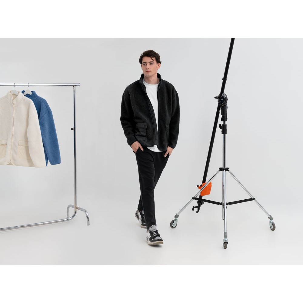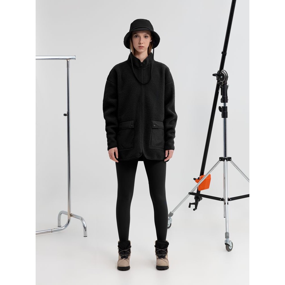 Куртка на молнии из современного двухслойного материала — модный искусственный мех снаружи и уютный флис внутри. Накладные карманы из гладкого нейлона создают заметный визуальный контраст и делают куртку Oblako по-настоящему стильным предметом гардероба.