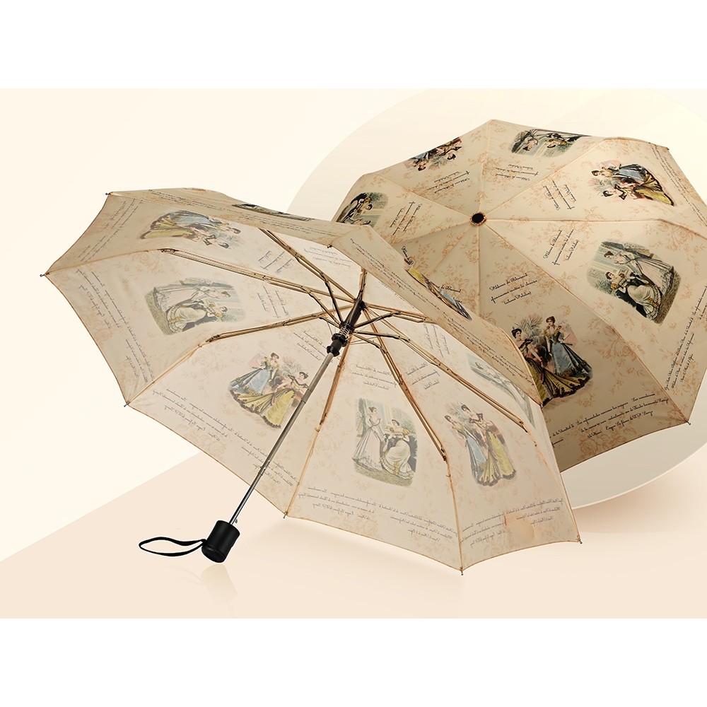 Оригинальный зонт оснащен полуавтоматическим механизмом. Купол зонта выполнен в нежных, приглушенных оттенках и задекорирован интересным принтом. Зонт удобно складывается в специальный чехол и хорошо защищает от дождя.
