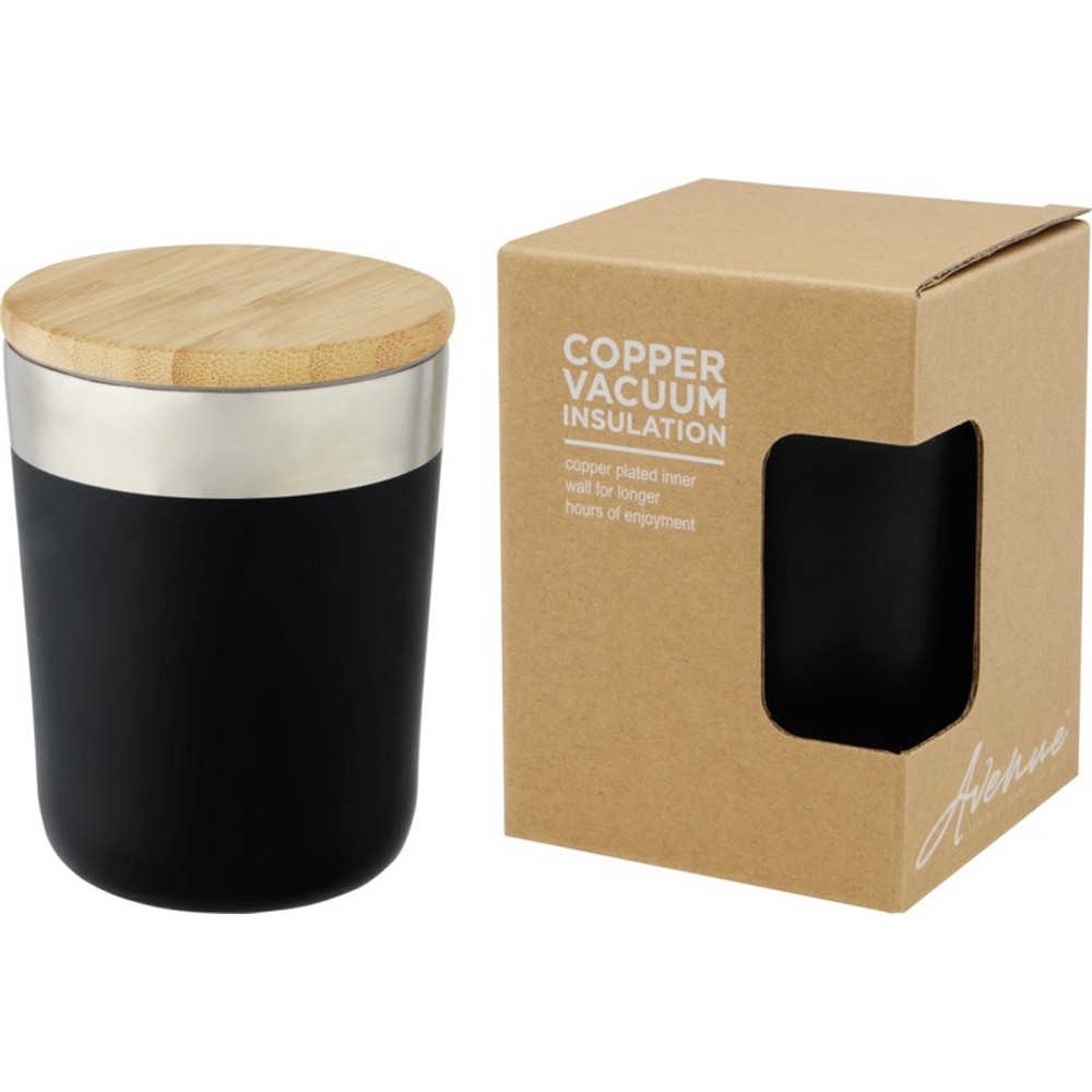 Lagan Кружка с медной вакуумной изоляцией объемом 300 мл и бамбуковой крышкой, черный