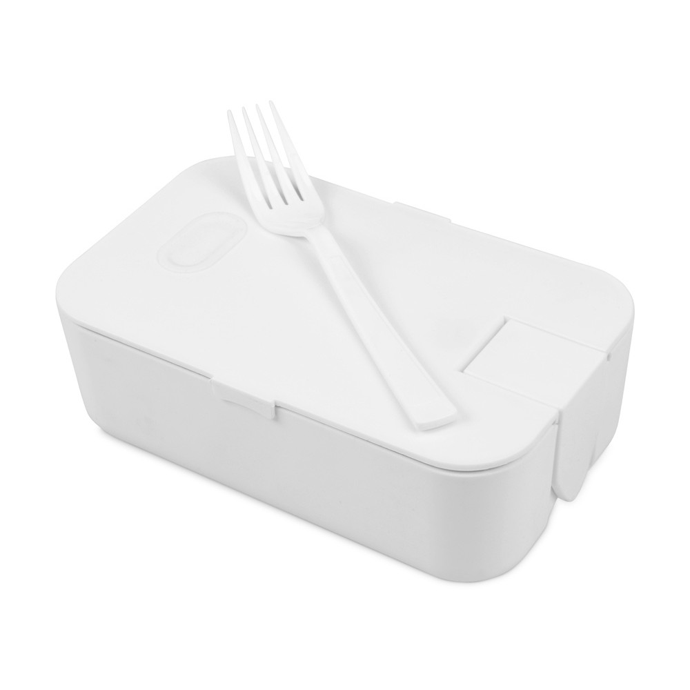 Ланч-бокс Neo можно брать с собой на работу, в школу, университет и командировки. Внутри прочной пластиковой емкости находятся снимаемая перегородка и вилка. Крышка с клапаном препятствует выпадению продуктов из бокса. Чтобы облегчить открытие контейнера, сначала выпустите воздух из него, потянув за силиконовый клапан на крышке. Деталь для фиксации крышки контейнера выполняет дополнительную функцию подставки для телефона, что особенно понравится тем, кто привык смотреть видео или читать книги во время перекуса. Ланч-бокс Neo можно разогревать в микроволновой печи, предварительно сняв крышку контейнера. Также разрешается использовать в посудомоечной машине и морозильной камере.