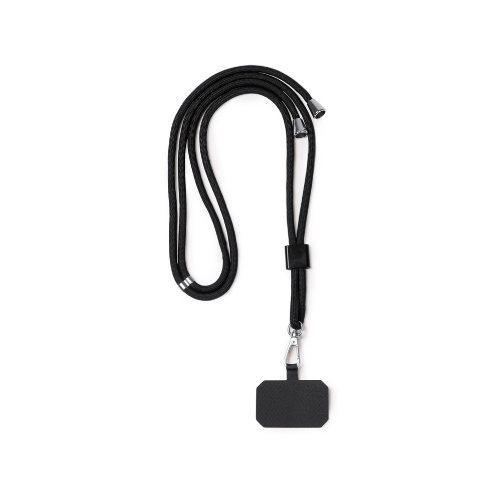 Держатель для мобильного телефона на шнурке из переработанного полиэстера RPET. Регулируемый ремешок, в комплект входит карабин.