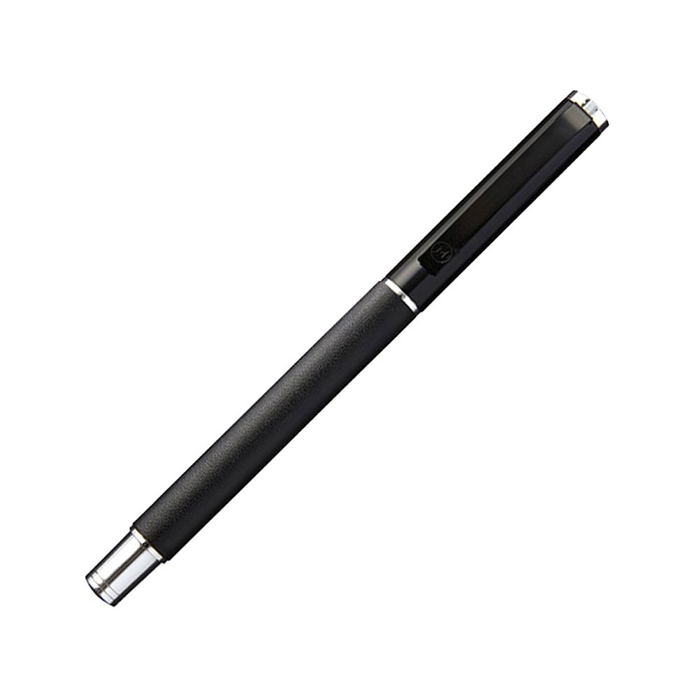 Стильная ручка роллер, с корпусом из искусственной кожи, матовым колпачком и хромированным наконечником станет отличным подарком даже для самых придирчивых клиентов. Черный стержень роллер. Упакована в подарочную коробку.