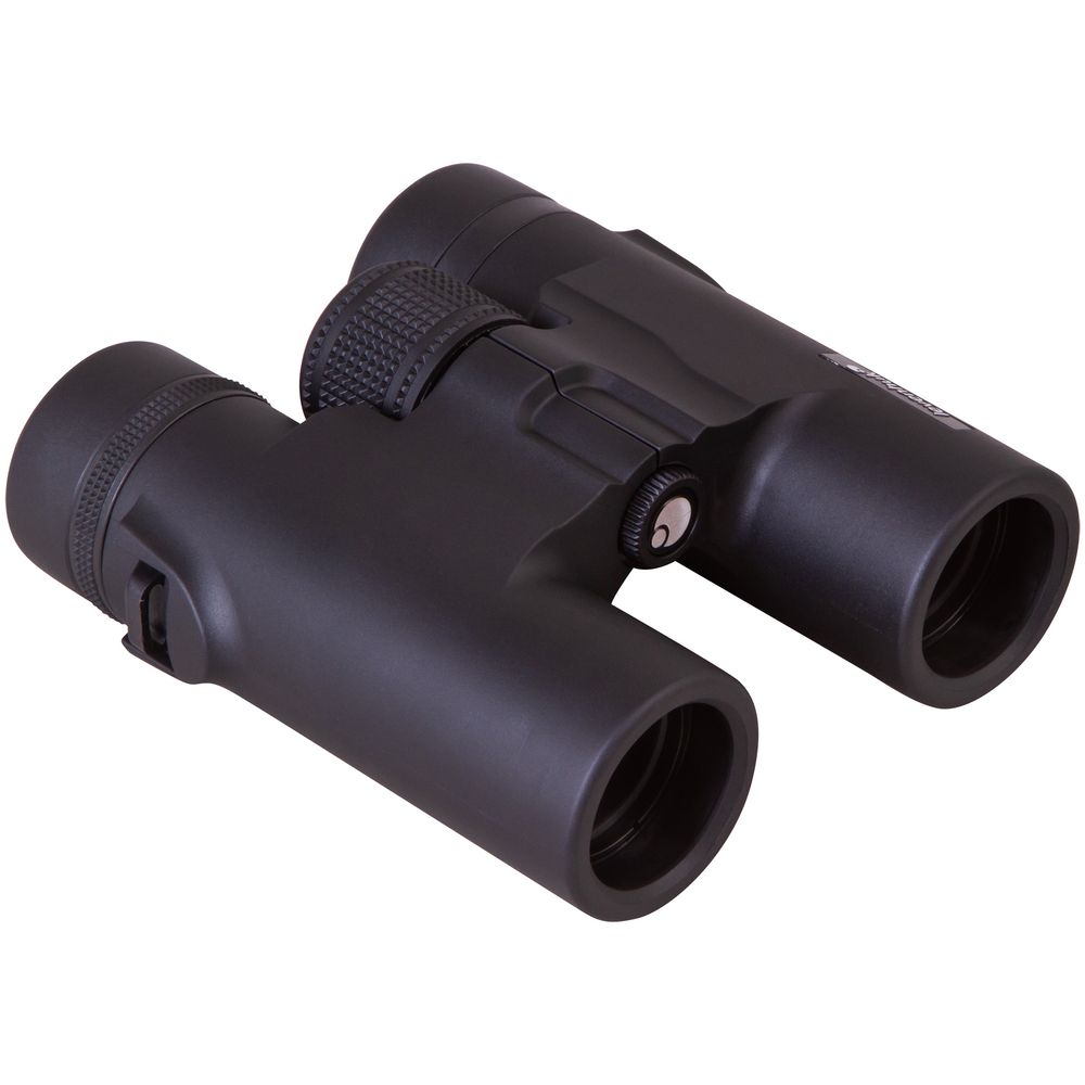 Бинокль создан на базе roof-призм и линз, сделанных из стекла BK-7. На линзы нанесено полное просветляющее покрытие — оно улучшает светопропускание и повышает качество картинки. У правого окуляра есть диоптрийная коррекция — с помощью специального кольца можно отрегулировать резкость в зависимости от особенностей зрения наблюдателя. Для фокусировки используется барабан, расположенный в центре корпуса. У окуляров увеличенный вынос зрачка и удобные поворотно-выдвижные наглазники, положение которых легко регулировать.
