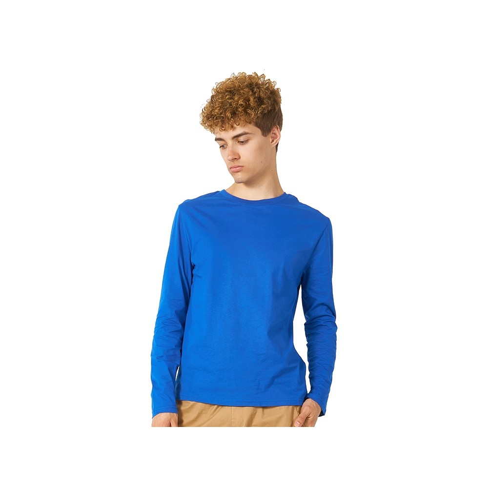 Футболка с длинным рукавом комфортной посадки с боковыми швами. Горловина обработана рибом 1х1 и тесьмой по спинке. Футболка выполнена из хлопкового джерси.
