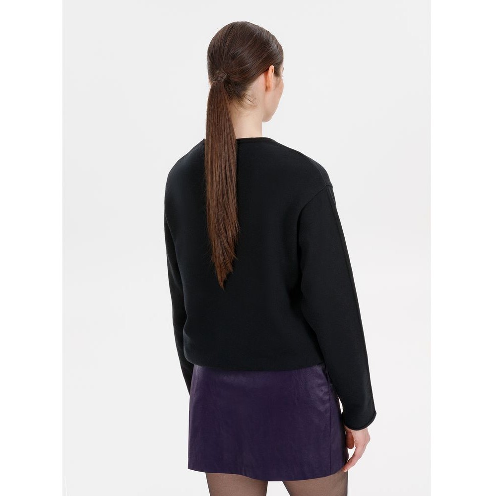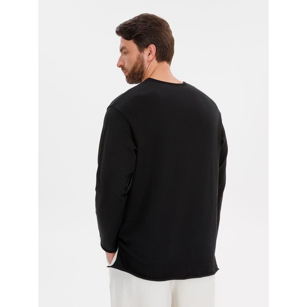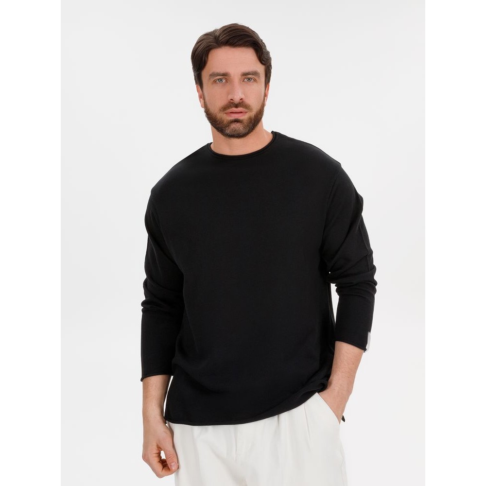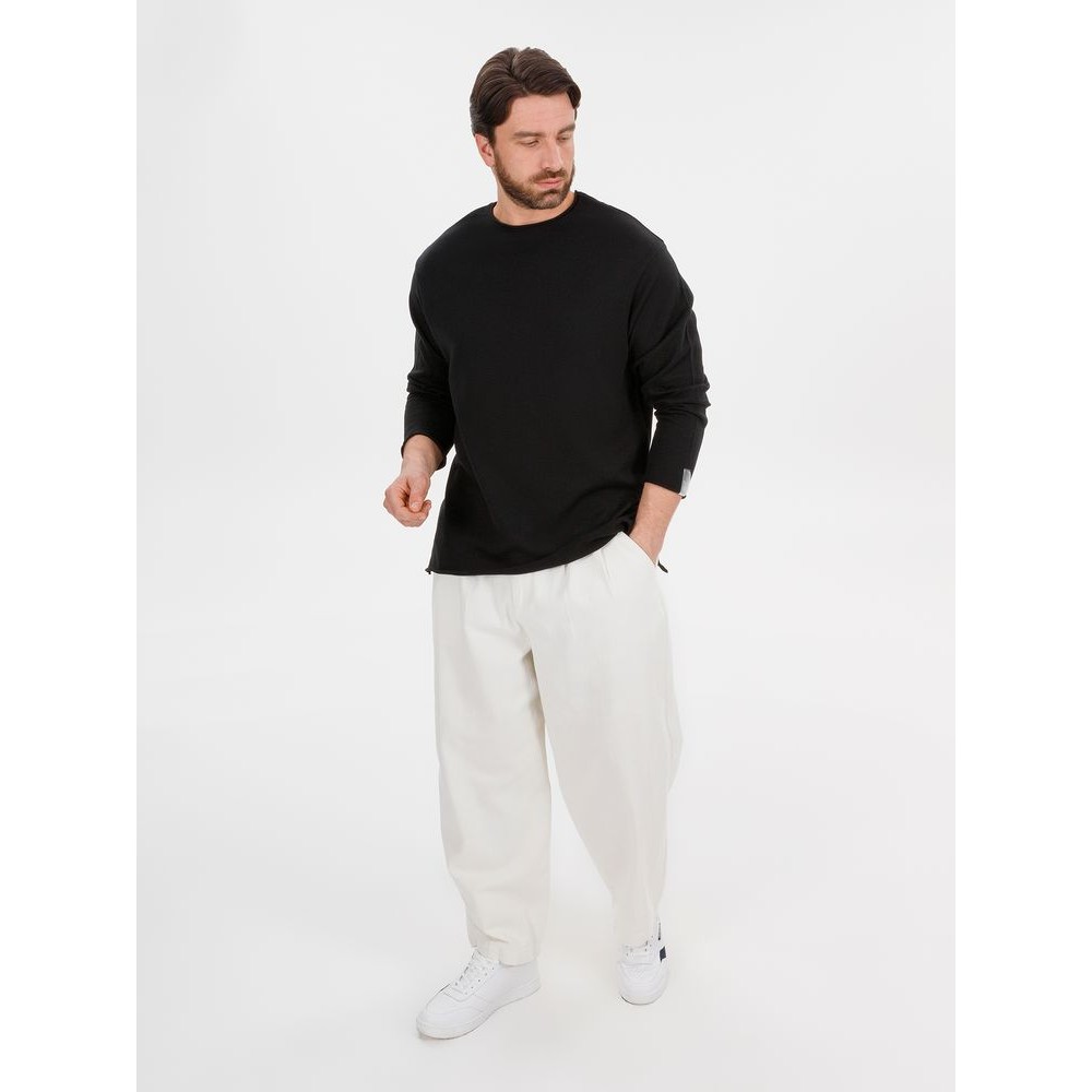 Лонгслив Fuori средней плотности с широким воротом, спущенной линией плеча и свободно подворачивающимися краями по низу, на рукавах и вороте, которые добавляют модели еще большей расслабленности. Прозрачная бирка с логотипом бренда на рукаве не нарушает минималистичности образа.
