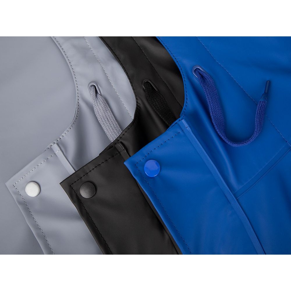 Плащ-дождевик с капюшоном из полиэстера с полиуретановым непромокаемым покрытием.
