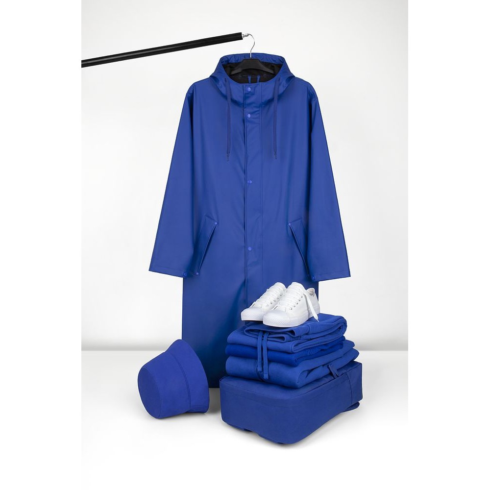 Плащ-дождевик с капюшоном из полиэстера с полиуретановым непромокаемым покрытием.