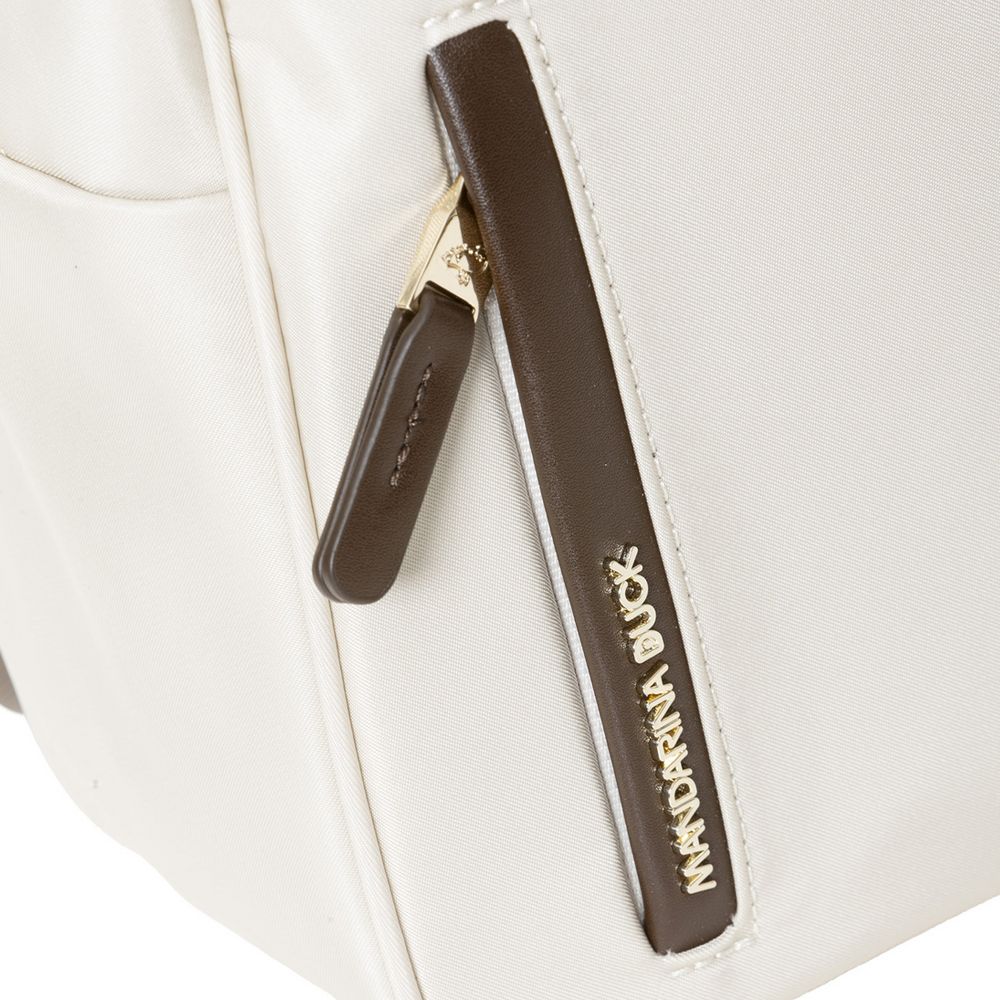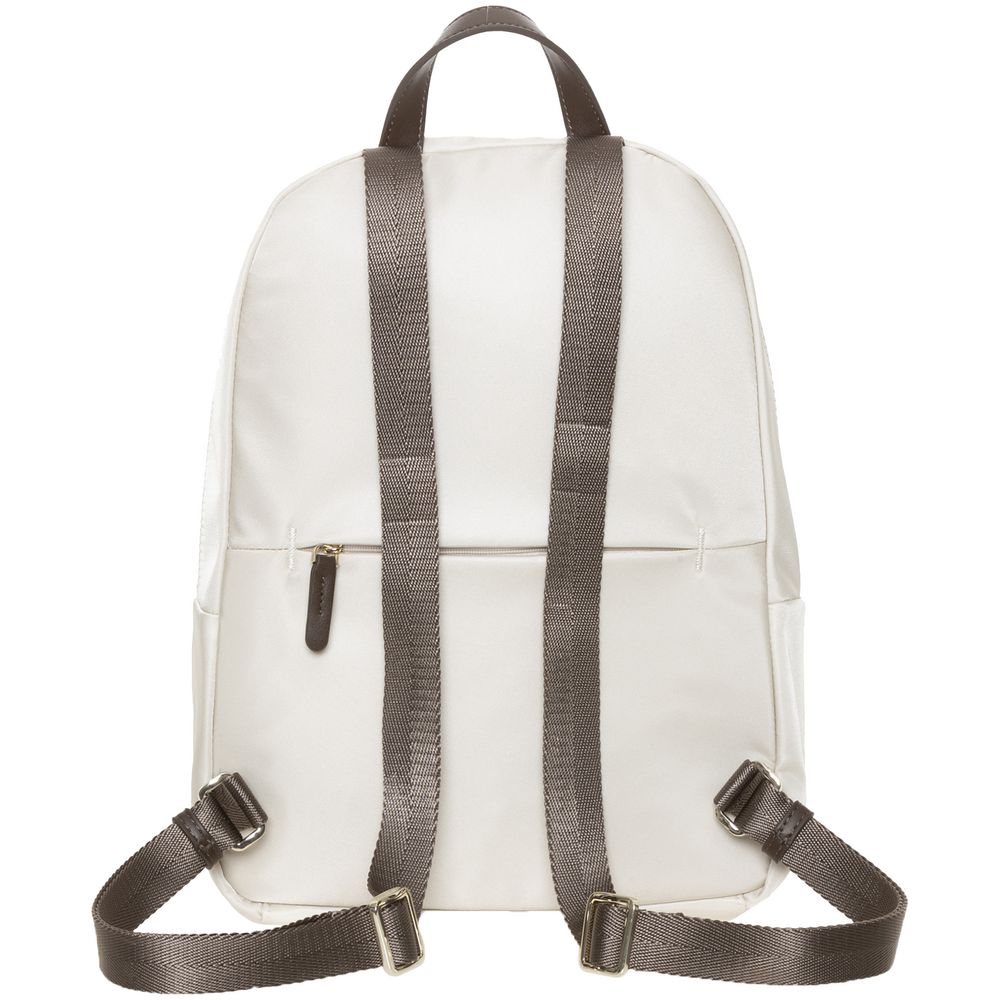 Изготовлен из гладкого влагостойкого нейлона, а также дополнен привлекательной фурнитурой из экокожи и металлизированным логотипом бренда.