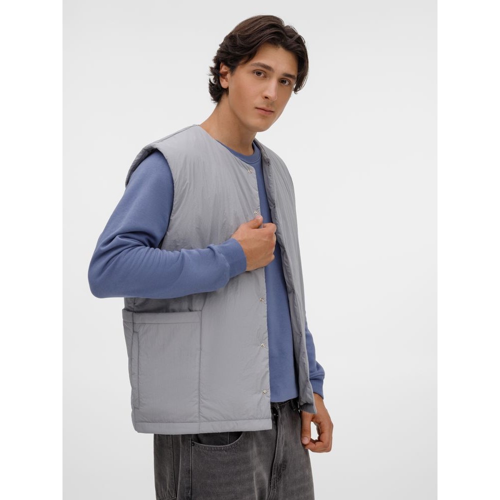 Коллекция верхней одежды, что легко согревает и обволакивает, как теплый и ласковый ветер, и в то же время ветра совсем не боится. Жилет из нейлона с текстурой мятого шелка создает приятный микроклимат, в котором воздушность сочетается с комфортной терморегуляцией.