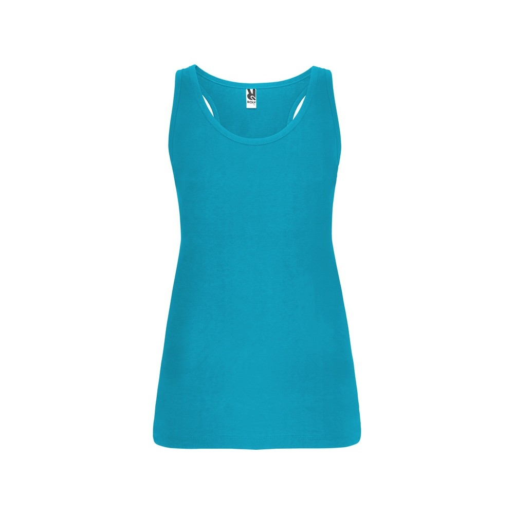 Майка узкого силуэта, горловина и проймы обработаны рибом. Спортивная спинка, боковые швы.