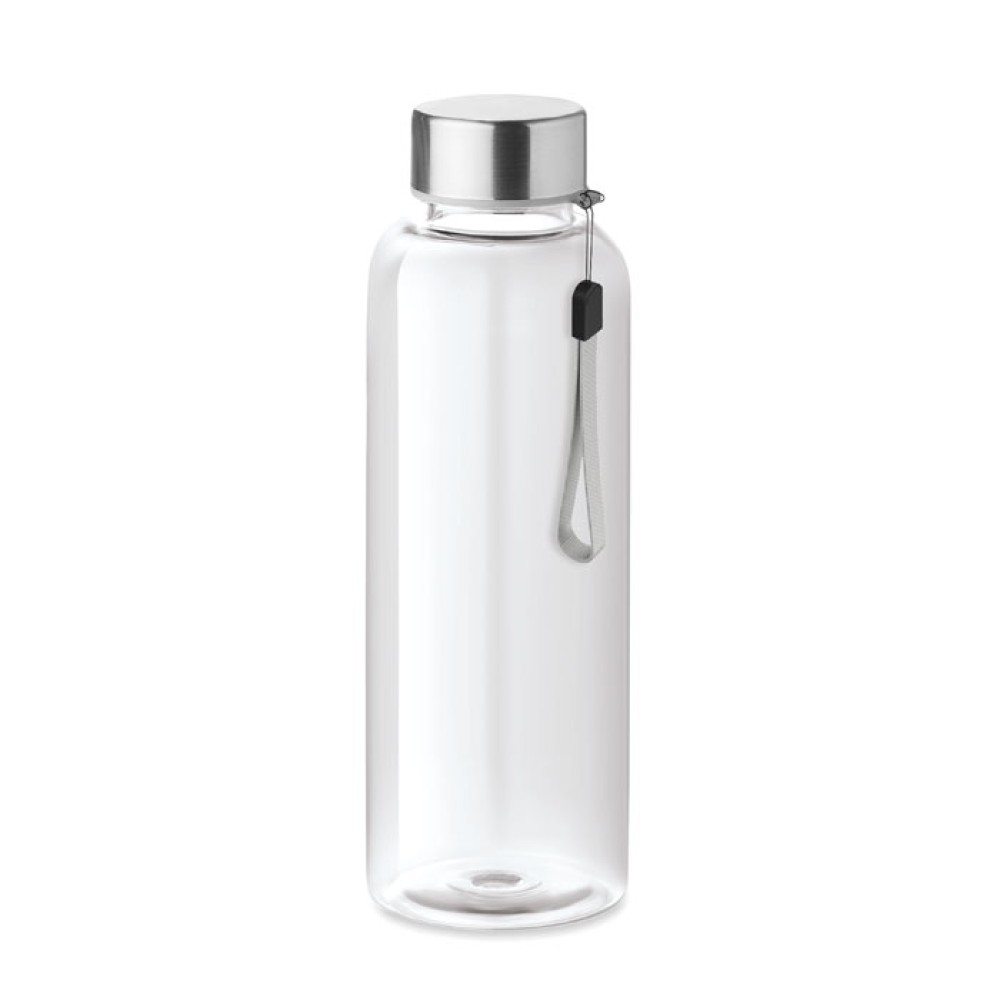 Фляга для питья из высококачественного пластика (Tritan). Металлическая крышка и текстильная ручка для удобства переноски. Объем 500 мл.