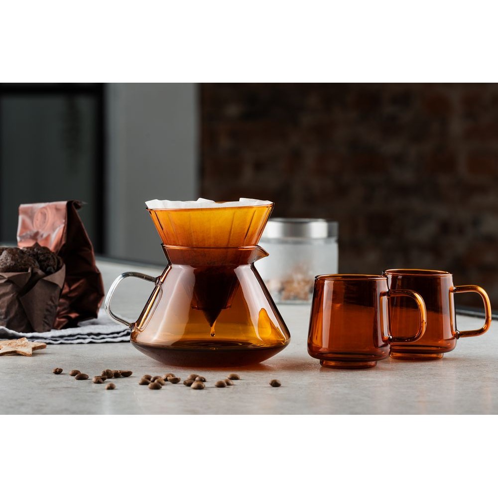 Элегантный кофейный набор Force Nexus добавит эстетики кофе-брейку и порадует ценителей своим изысканным современным исполнением. Благодаря тонкому боросиликатному стеклу кружки, воронка и кофейник Force Nexus очень легкие, а янтарный цвет привлекает внимание и добавляет теплоты.