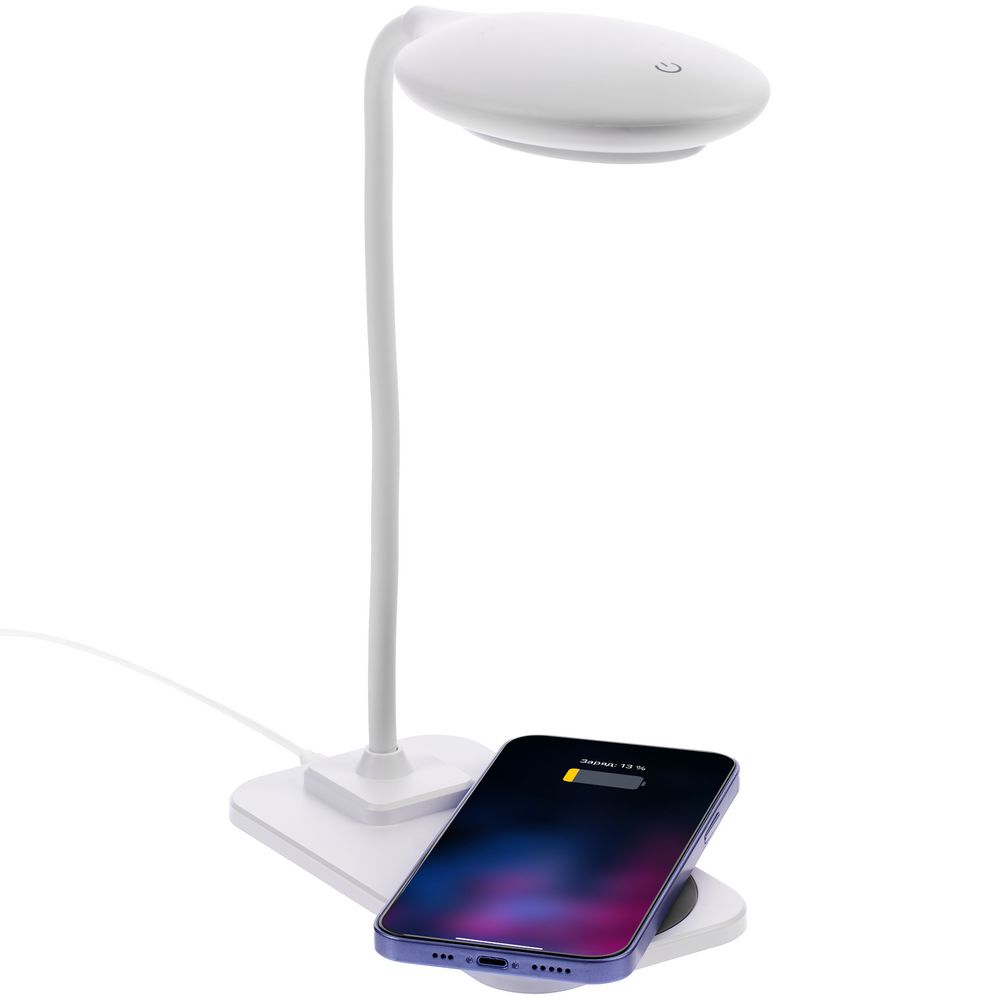 Настольная лампа с беспроводной зарядкой Modicum, белая