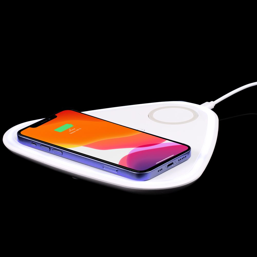 Зарядка начнется автоматически при размещении смартфона, поддерживающего технологию беспроводной зарядки Qi, на индукционной площадке.