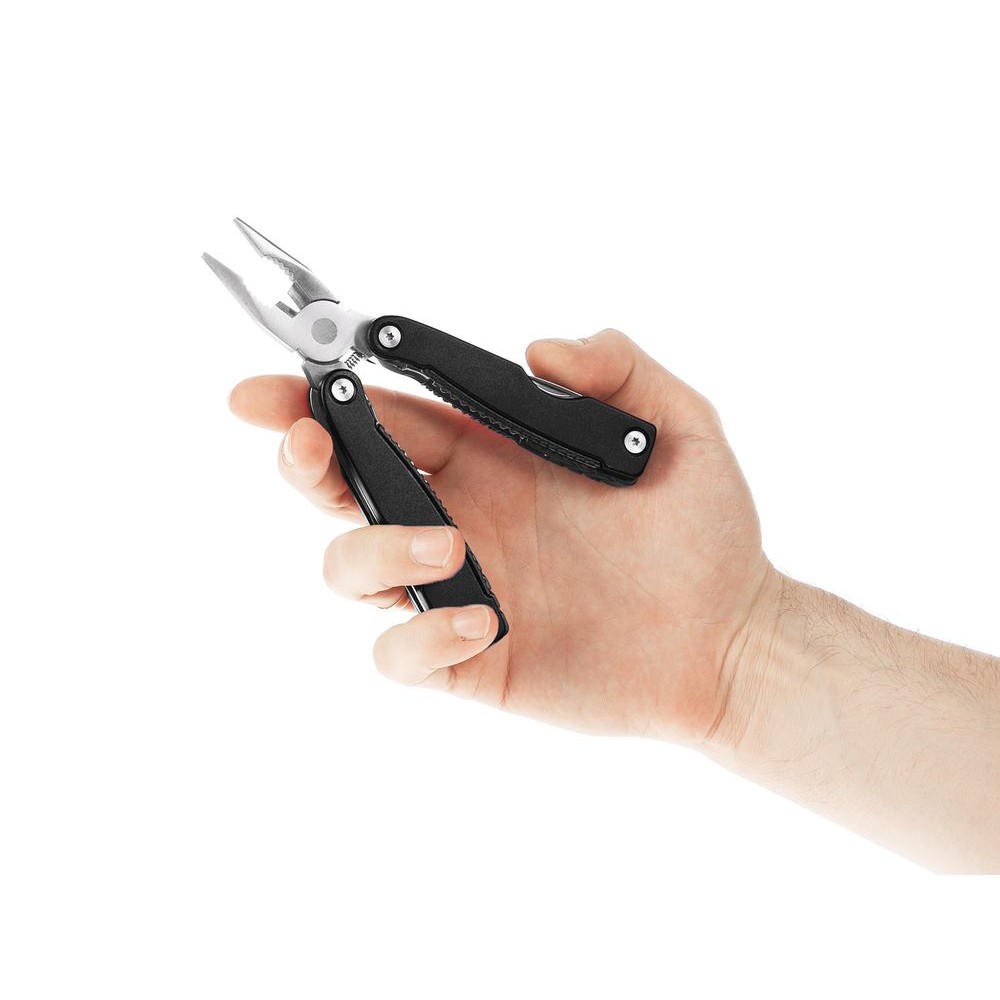 Классический мультитул-плоскогубцы, в рукоятках которого прячется еще 10 полезных инструментов от отвертки до пилы. Выручит во многих бытовых ситуациях, а для хранения удобно складывается в прочный чехол.