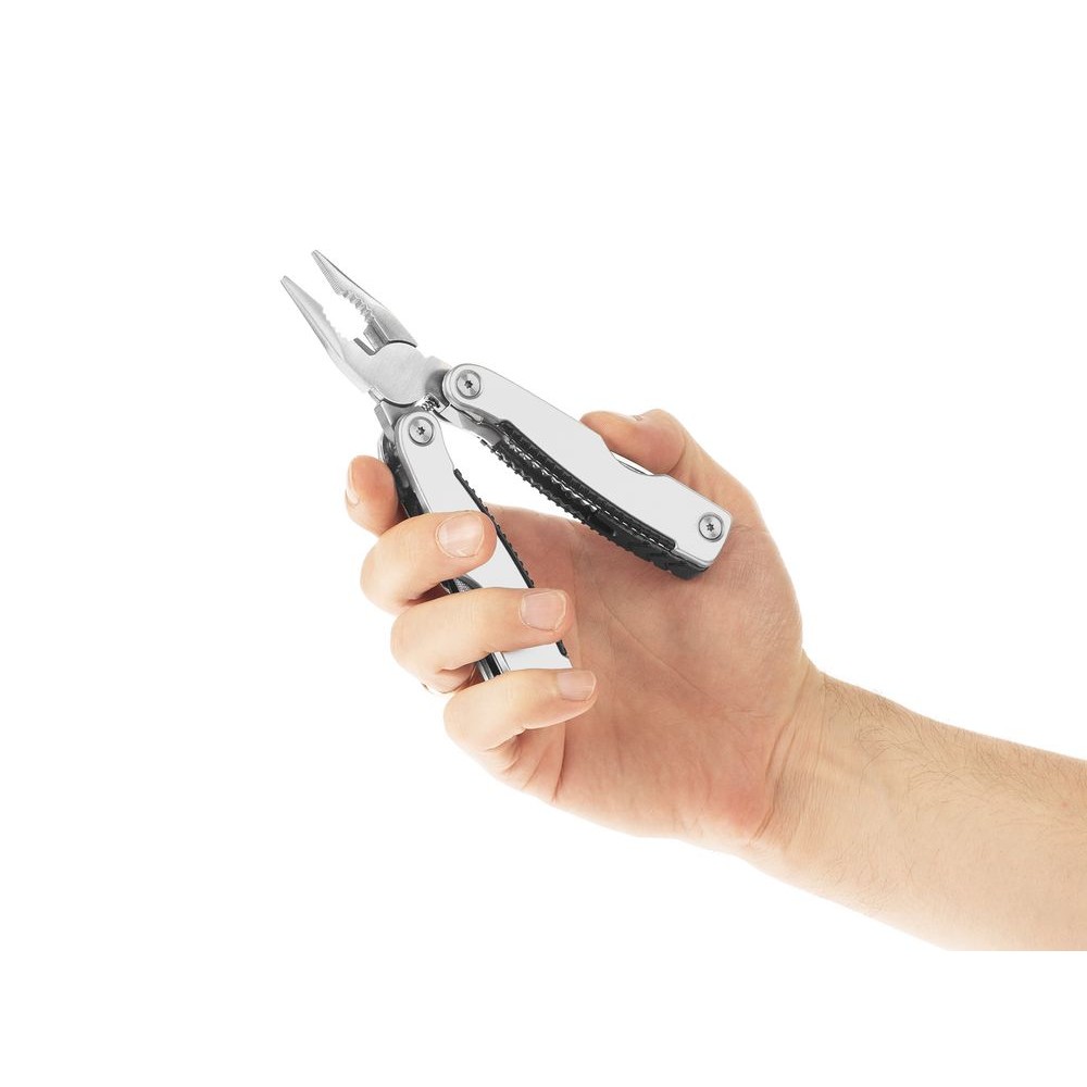 Классический мультитул-плоскогубцы, в рукоятках которого прячется еще 10 полезных инструментов от отвертки до пилы. Выручит во многих бытовых ситуациях, а для хранения удобно складывается в прочный чехол.