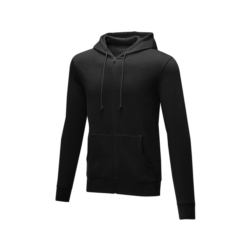 Мужская толстовка на молнии Theron. Основная этикетка, которую можно оторвать или отрезать, без неудобных пришитых ярлыков. Завязки на капюшоне. Расположенная по центру молния. Карман кенгуру. С подшивкой из гладкого трикотажа в рубчик. С манжетами из гладкого трикотажа в рубчик. Внутренняя сторона покрыта ворсом. Тесьма из основного материала по внутренней стороне горловины. Трикотаж 50% Хлопок, 50% Полиэстер, 240 g/m2.