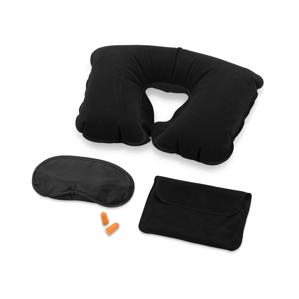 Замечательный дорожный набор включает в себя надувную подушку, маску на глаза и беруши, все это упаковано в специальный чехол. Приятная на ощупь поверхность набора обеспечит комфортный сон в любой обстановке.