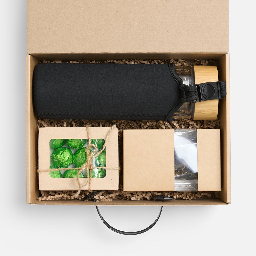 | Материал | бутылка - боросиликатное стекло, нержавеющая сталь, бамбук, неопрен; коробка - картон, пластик |