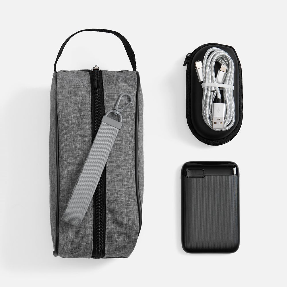 | Размер20x10x9,5 см | Цветсерый | Материалаккумулятор - пластик; кабель - алюминий, оплетка - нейлон; футляр - искусственная кожа; несессер - полиэстер, 300D; ремувка - металл, полиэстер 100% |