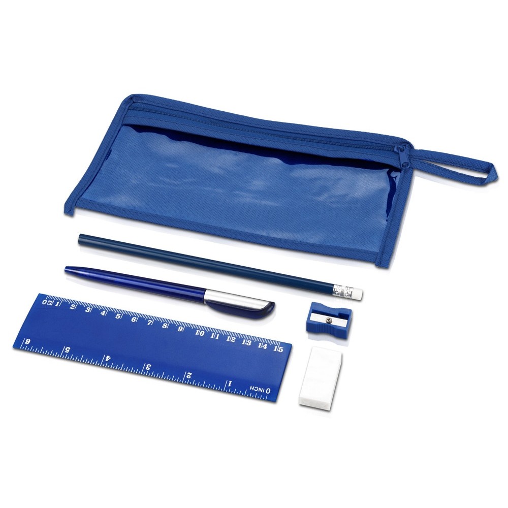 | Комплектность | ручка шариковая, карандаш, точилка, ластик, линейка, чехол |