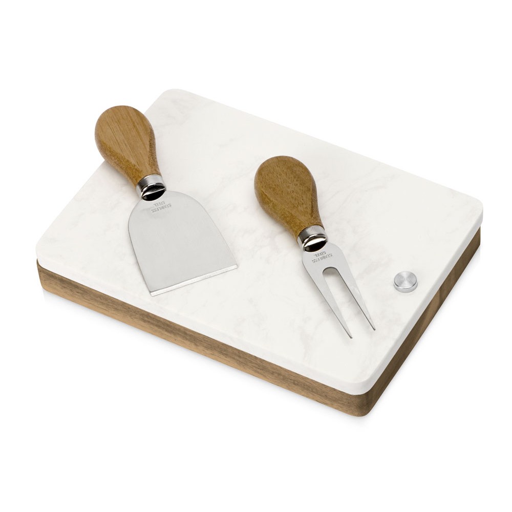Набор для сыра бренда Eat&Bite Select состоит из ножа и вилки в футляре. Высококачественные материалы — акация и искусственный мрамор — обеспечивают набору долгую жизнь и благородный внешний вид. Крышка футляра, выполненная из белого мрамора, благодаря своей твердости может использоваться как разделочная доска, а благородный внешний вид делает ее идеальным вариантом для сервировки сыров и закусок.