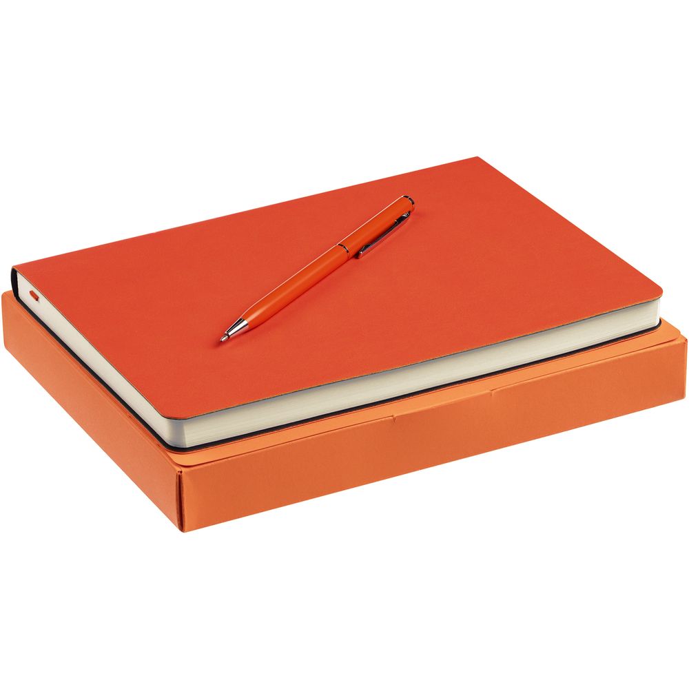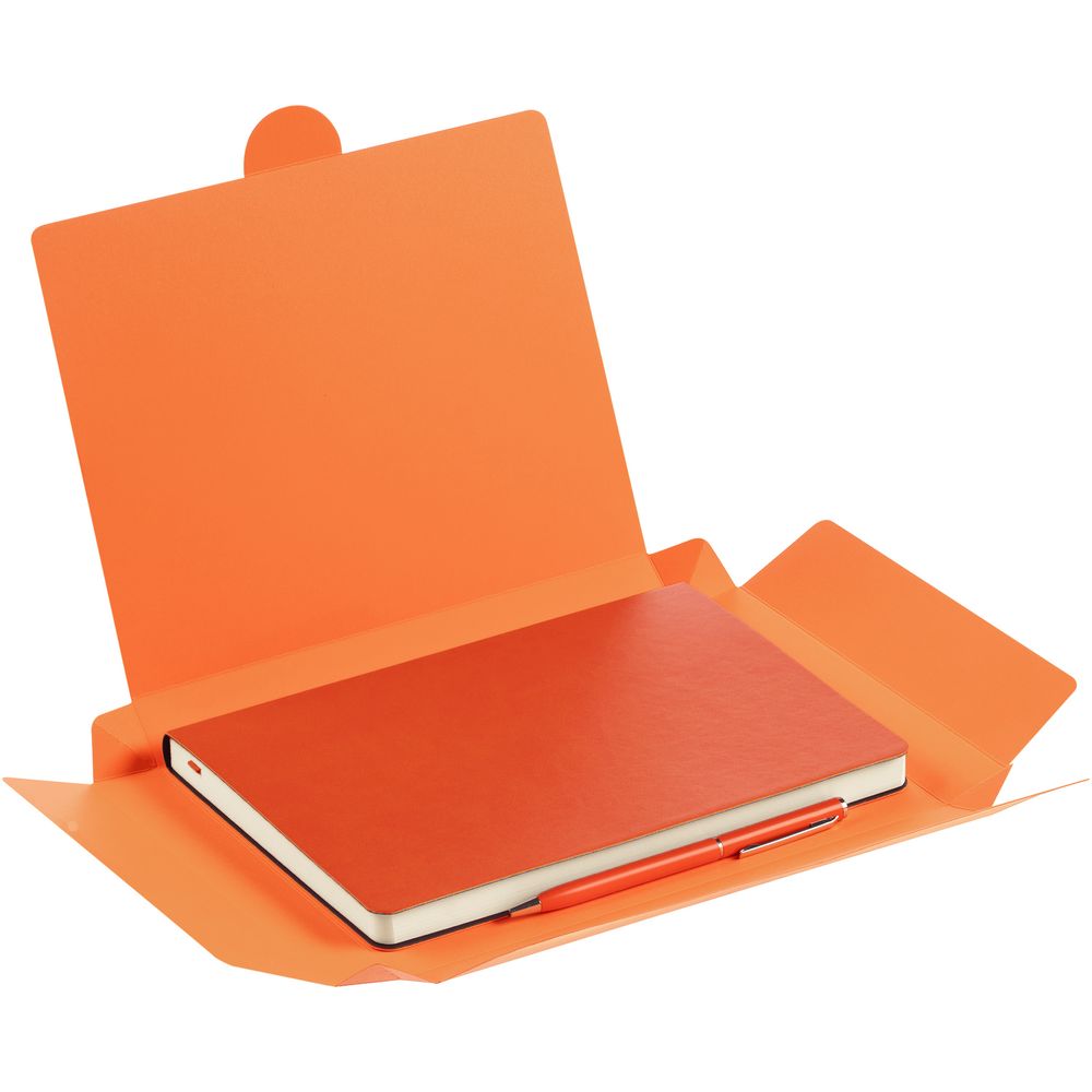Недатированный ежедневник с гибкой обложкой из материала Latte с ляссе в цвет обложки, а также ручка в тон — в подарочной коробке из дизайнерского картона.