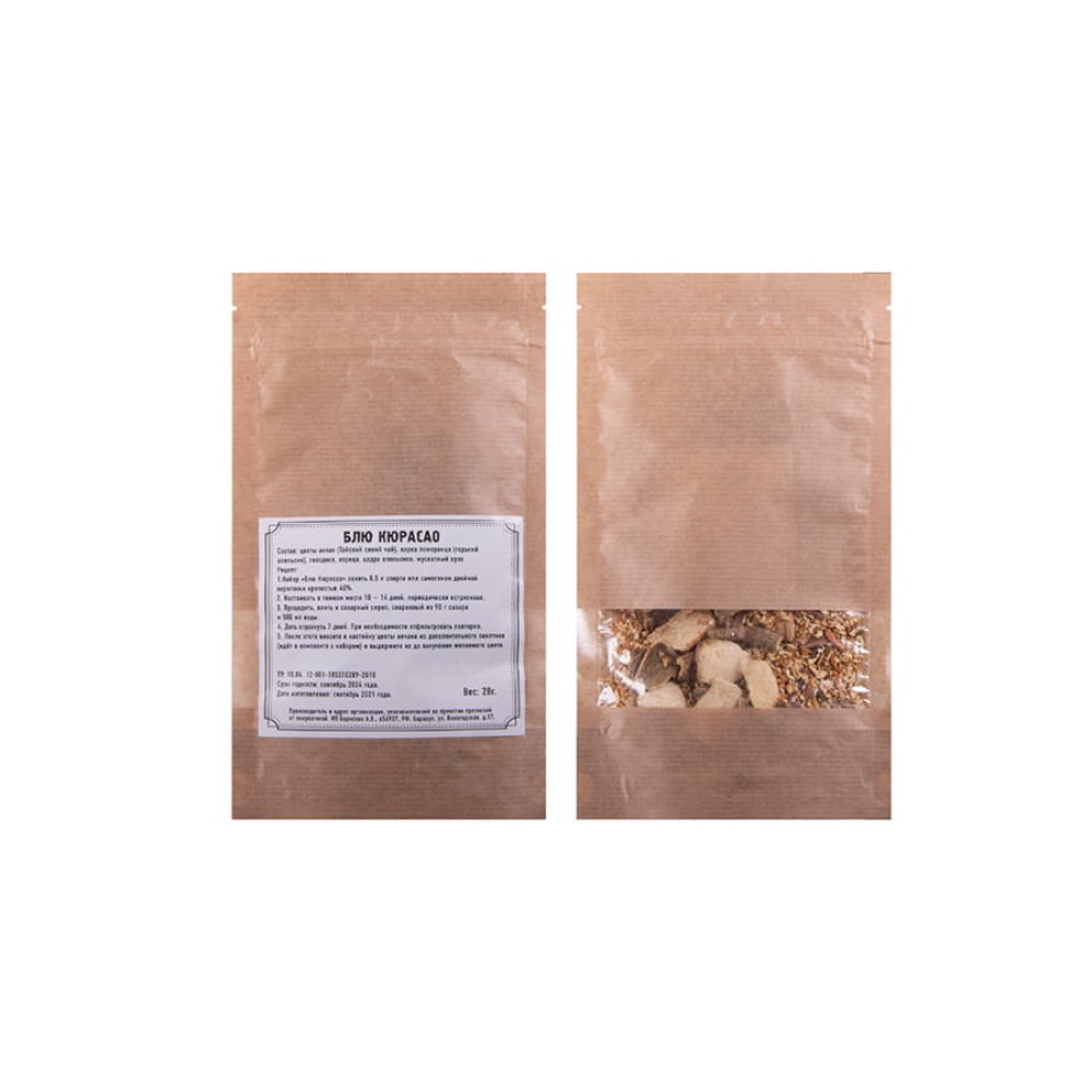 - набор трав и специй " Блю Кюрасао" (цветы анчан (Тайский синий чай), корка померанца (горький апельсин), гвоздика, корица, цедра апельсина, мускатный орех),