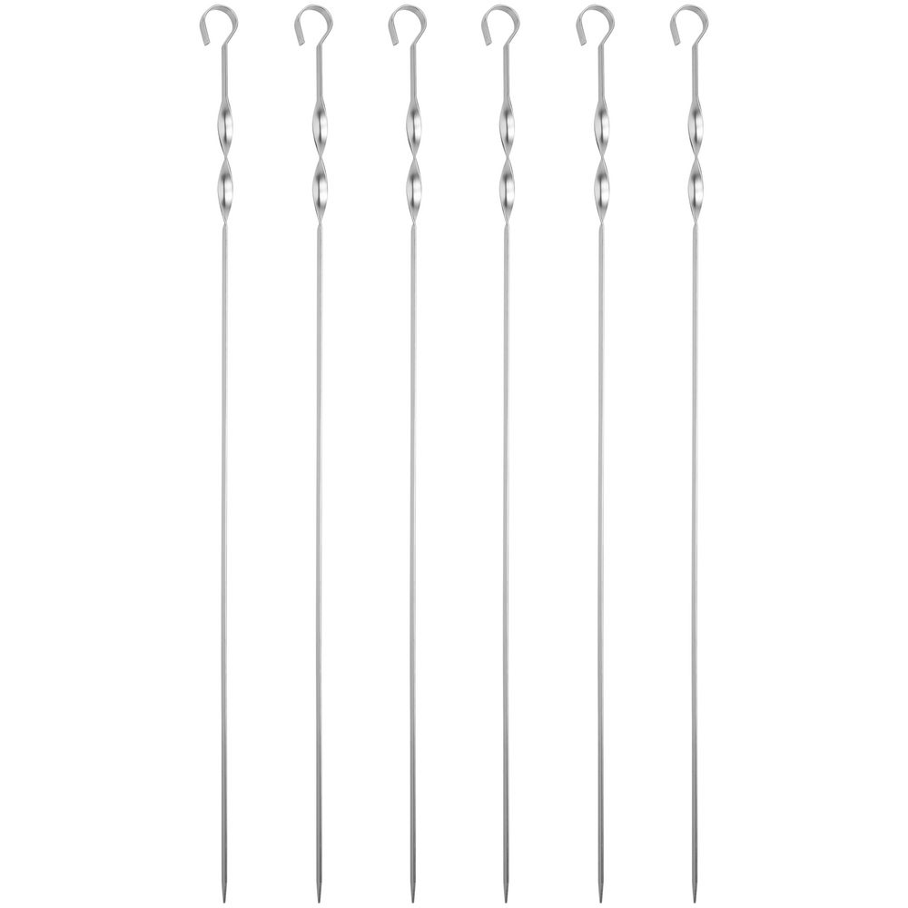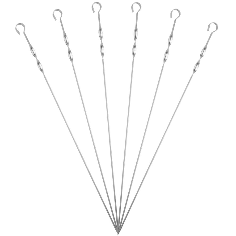 Длинные шампуры подходят для мангалов шириной до 40 см. Спираль у рукоятки позволяет фиксировать шампур при переворачивании шашлыка во время приготовления.
