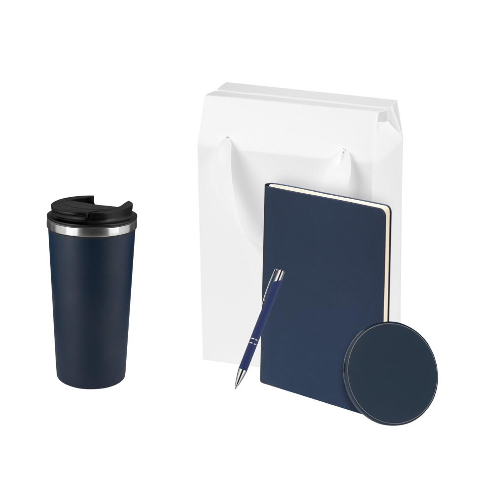 Технические характеристики Подарочный набор Палермо (Palermo), синий (термокружка, ежедневник, зарядное устройство, ручка)