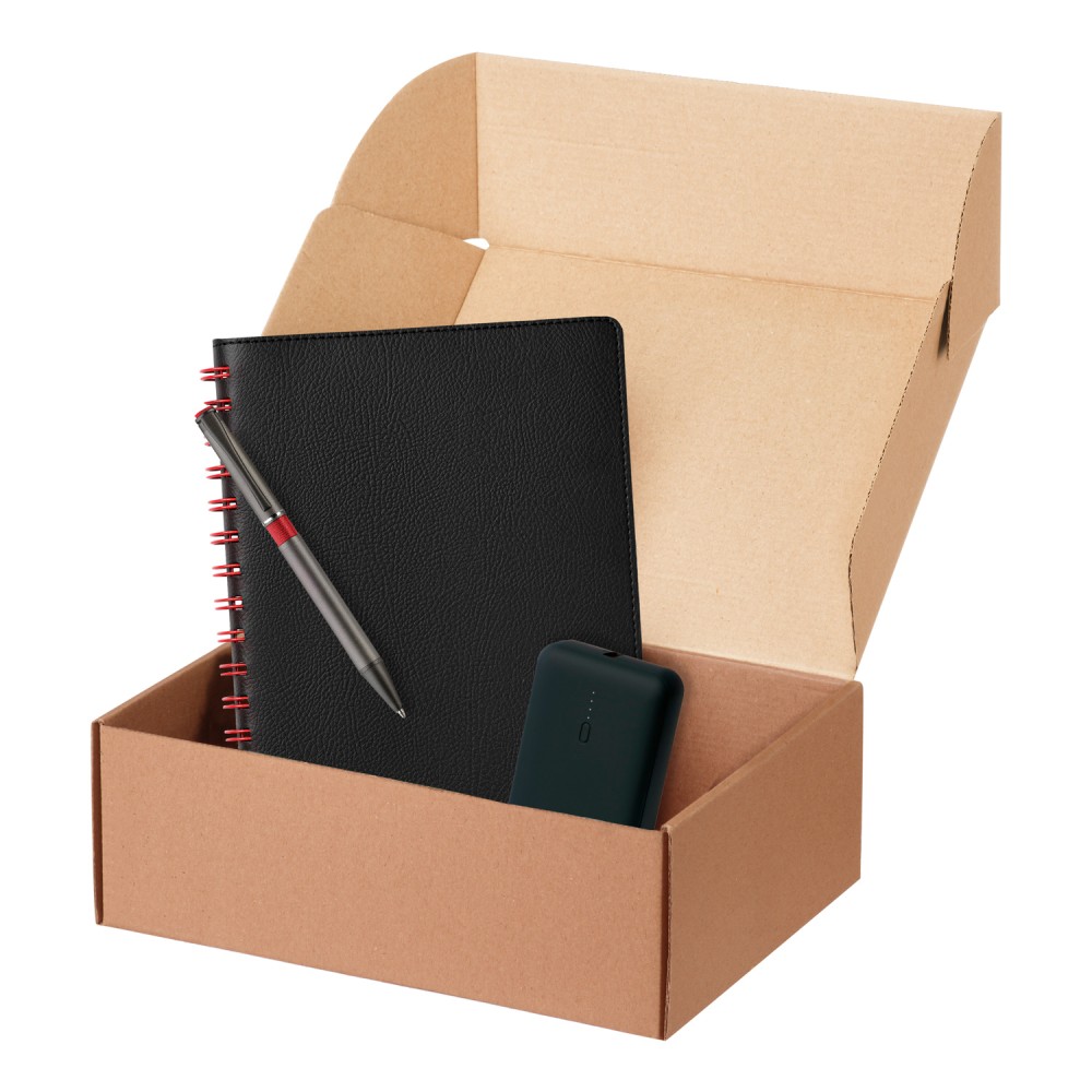В комплекте: стильный ежедневник для планирования и любых записей, ручка для комфортного письма и внешний аккумулятор, который позволит оставаться на связи в любой ситуации.