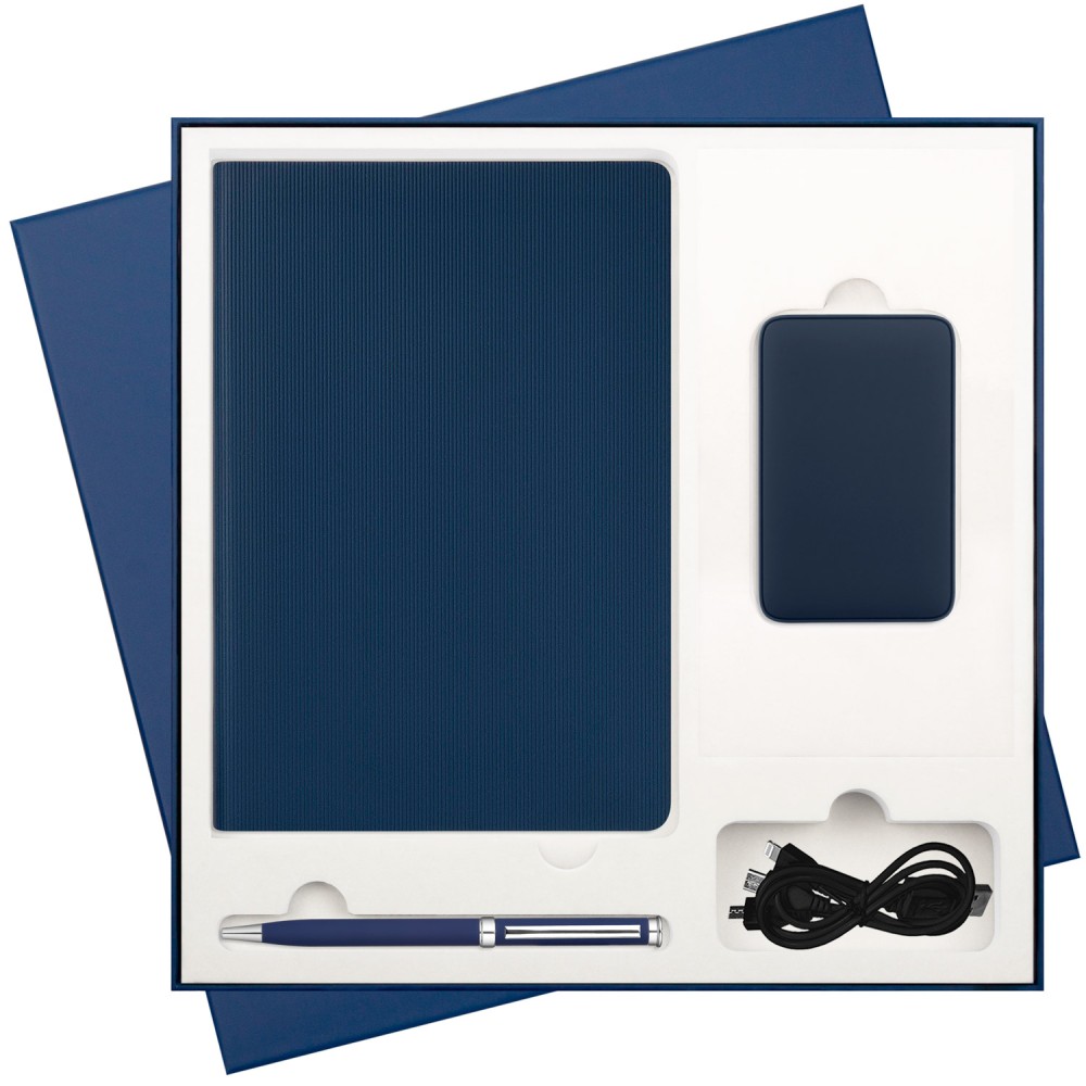 Подарочный набор Рейн (Rain), синий (ежедневник, ручка, аккумулятор)