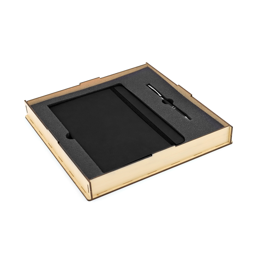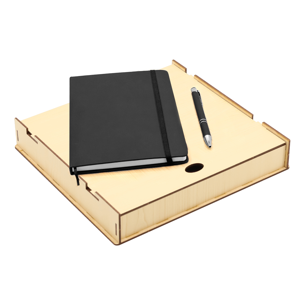 Оригинальный и стильный набор для письма, отличающийся утонченным стилем и совершенством деталей. Вам не придется думать над подарком - просто бери и дари! Упаковка из древесноволокнистной плиты высокой плотности (ХДФ/HDF) обеспечивает удобство погрузки и разгрузки, сохранность в пути. Состав набора: Упаковка из древесноволокнистной плиты - 1 шт. (Артикул: 53300) Ложемент 24,1х24,1х2 см (блокнот А5 + ручка) - 1 шт. (Артикул 53058.1) Блокнот A5 "Monte" с линованными страницами - 1 шт. (Артикул: 51000.02) Ручка металлическая Molly - 1 шт. (Артикул: 1033.02)