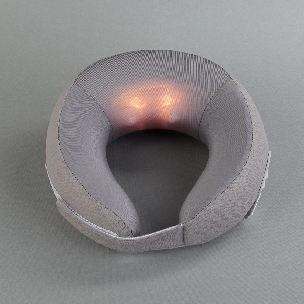 Внутренний материал подушки (вспененный полиуретан) обладает эффектом памяти, благодаря которому подушка максимально удобно располагается на шее и удерживает голову. Сеанс массажа длится 15 минут, меняя направление вращения двух роликов каждые 5 минут. Дополнительно можно использовать режим тёплого обогрева массажной зоны.