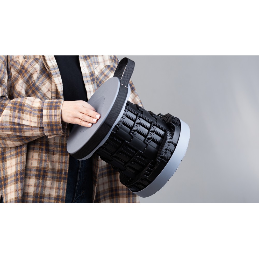 "Tourist" - свободный и независимый, а еще легкий - вес стула всего 1 кг, компактный - размер в сложенном виде d 26 х 7 см.
