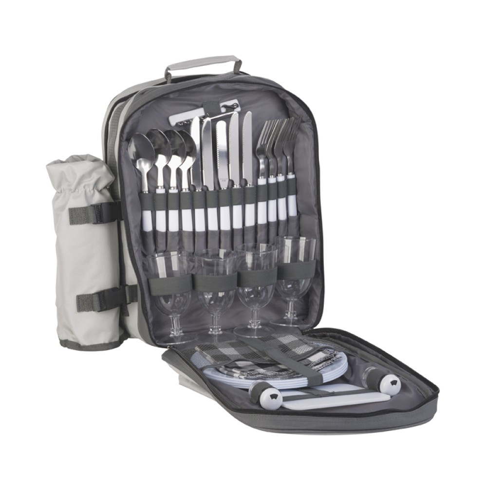 Набор для пикника "Дания" на 4 персоны с холодильным отделением, серый с черным