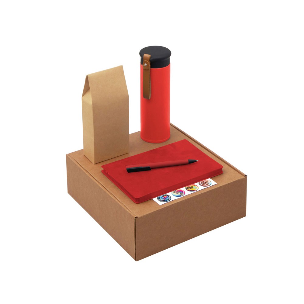 Функциональный и сбалансированный набор для сотрудников, партнёров или клиентов — отлично подойдёт для welcome-боксов, тимбилдингов, внутренних мероприятий и корпоративных праздников. Состав набора: • Блокнот — удобный формат для записей, брифов и ежедневных задач • Ручка — классическая, с необычным слайдером и приятной soft-touch поверхностью делает письмо более комфортным. • Термос из долговечной нержавеющей стали с двойными стенками, вакуумная изоляция между которыми помогает сохранять температуру напитков в течение долгого времени. Термос идеально подходит для заваривания чая: специально для этого в комплекте идет металлическое ситечко с ручкой, которое не пропустит ни одной чаинки. • Классический чёрный байховый чай поможет взбодриться и освежить мысли, поэтому его можно пить утром для лёгкого пробуждения или днём — чтобы восстановить силы и сосредоточиться. Вечером он станет приятным завершением дня в сочетании с десертом или лёгкими закусками. • Набор стикеров — для ярких акцентов и персонализации вещей; • Универсальный ложемент обеспечивает аккуратное размещение и надёжную фиксацию элементов, делая набор эффектным и презентабельным при вручении. • Дополнительное преимущество — набор доступен в конструкторе наборов: компоненты можно заменить и собрать индивидуальный вариант под стиль компании или вкусы получателя. • Готовое решение для корпоративных подарков • Все элементы функциональны и актуальны для повседневного использования