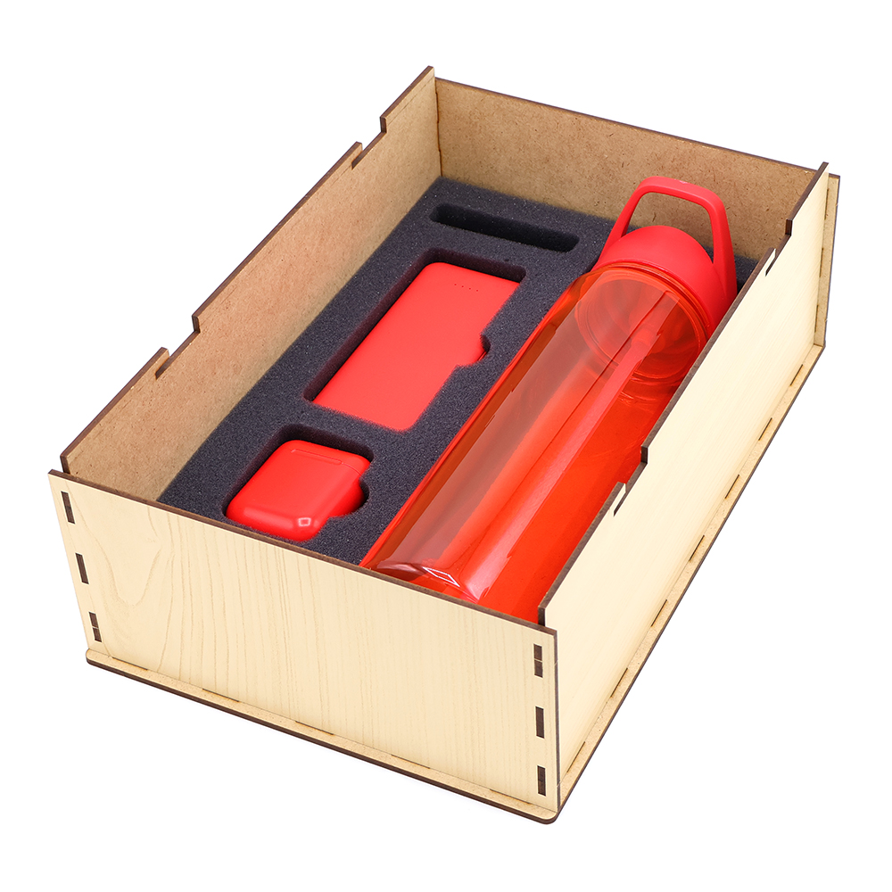 Отличный подарок для выражения благодарности или комплимента! Упаковка из древесноволокнистной плиты высокой плотности (ХДФ/HDF) обеспечивает удобство погрузки и разгрузки, сохранность в пути. Состав набора: Подарочная коробка ламинированная из HDF 29,5*19,5*10,5 см с ложементом (наушники + аккумулятор + бутылка) - 1 шт. (Артикул: 53062) Наушники беспроводные Bluetooth SimplyPods - 1 шт. (Артикул: 47004.05) Внешний акккумулятор Arrida 5000mAh - 1 шт. (Артикул: 2017.05) Пластиковая бутылка Jogger - 1 шт. (Артикул: 14012.05)