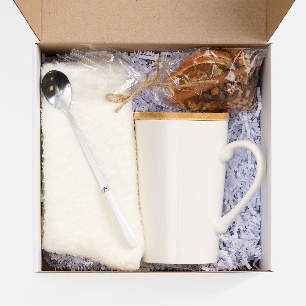 | Размер21,5х20,5х10,8 см | Материалкружка - фарфор, крышка - бамбук; ложка - нержавеющая сталь; носки - полиэстер 100%; коробка - микрогофрокартон, Т-23Е |