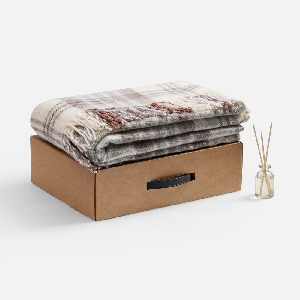 Каждая деталь поможет обрести душевный покой: согревающий аромат диффузора и мягкость шерстяного пледа создают ощущение домашнего уюта и тепла в любую погоду.Емкость диффузора 30 мл.