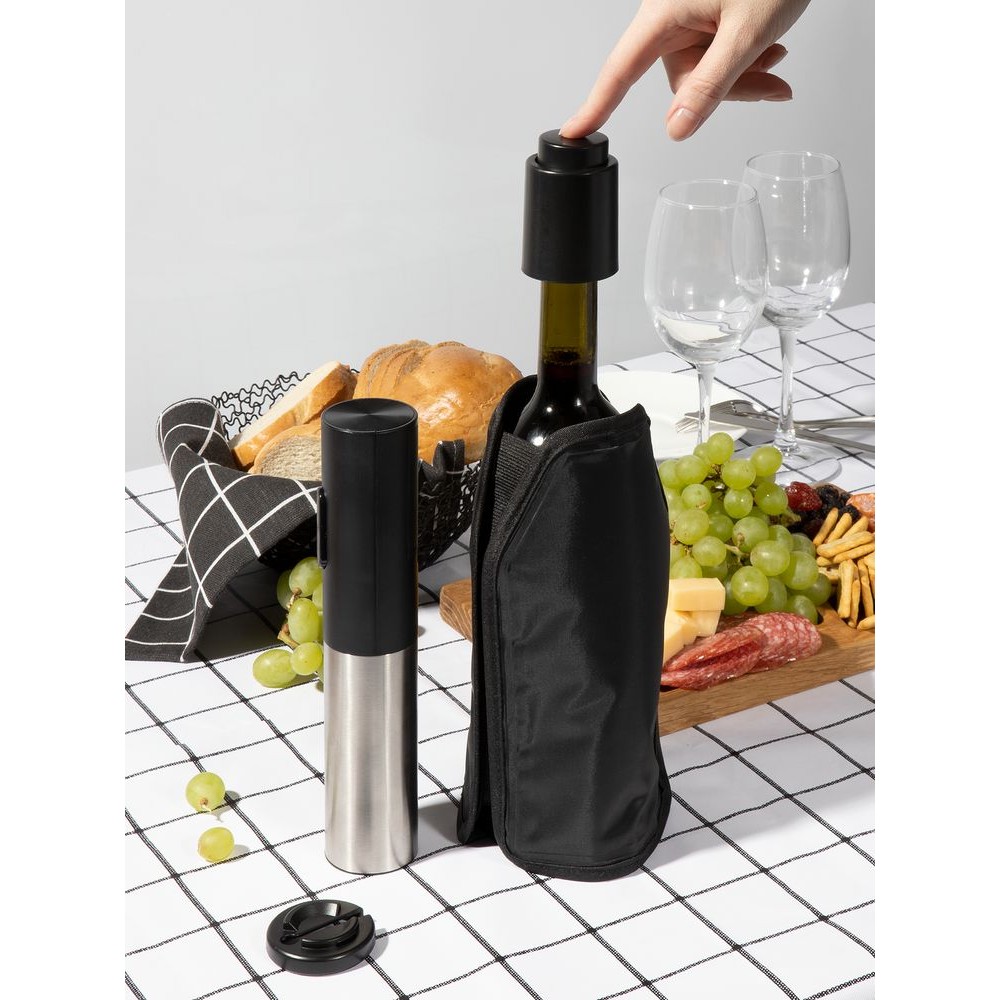 - Электрический штопор — незаменимый помощник для ценителей вина. Позволяет легко и быстро справиться с пробкой любой прочности и открыть бутылку. Нажмите нижнюю кнопку, и лезвие вкрутится в пробку, нажмите верхнюю — бутылка будет открыта.