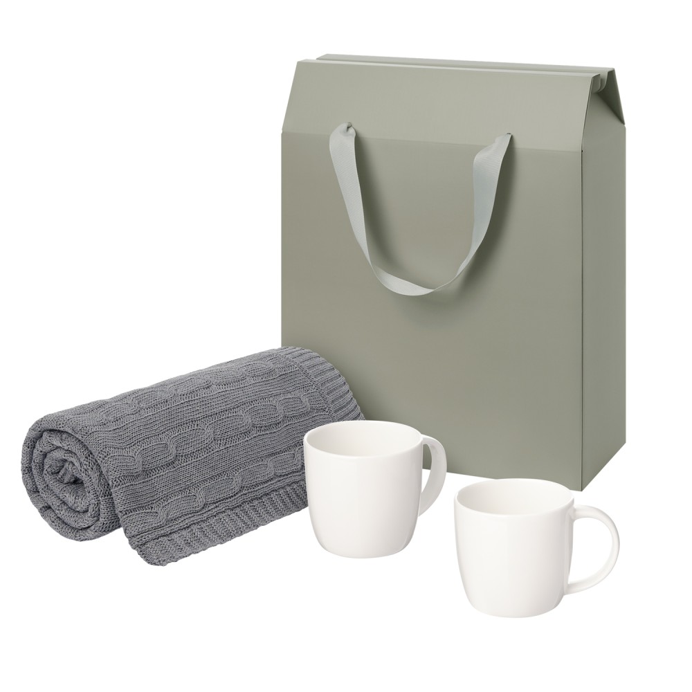 Подарочный набор Дафна (Dafna), Фадо (Fado), серый в коробке-пакете (две фарфоровых кружки, плед)