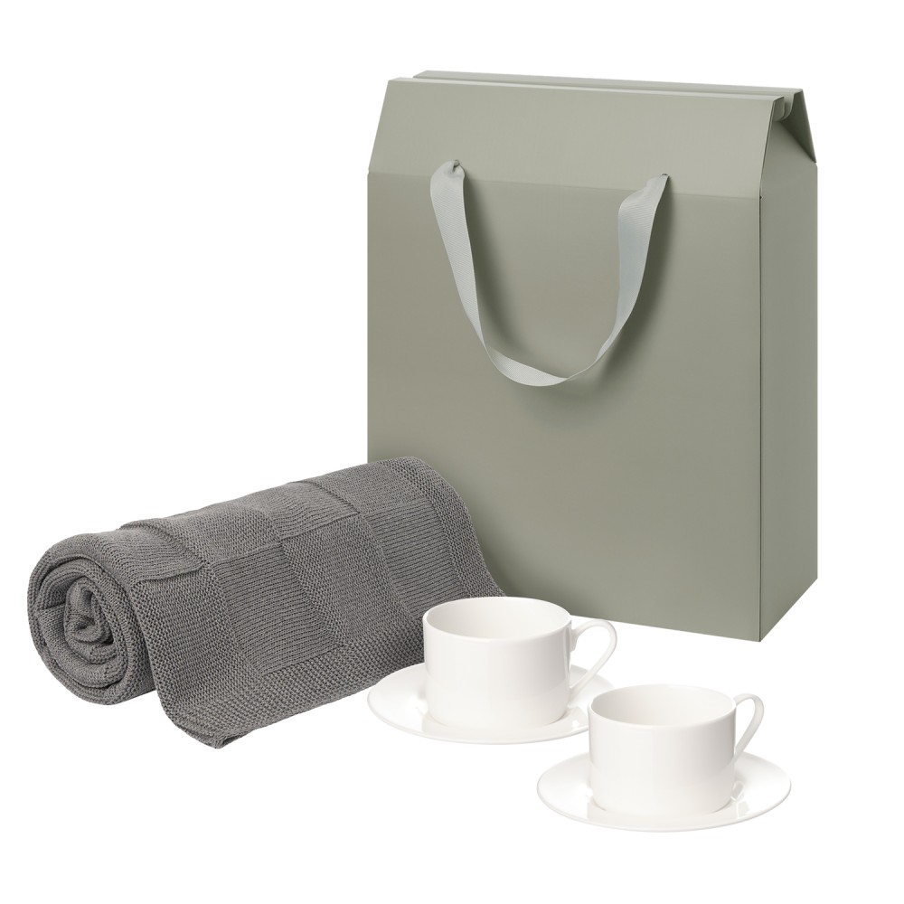 Подарочный набор Мокко (Mokko), Селла (Сella), серый в коробке-пакете (две чайных пары, плед)
