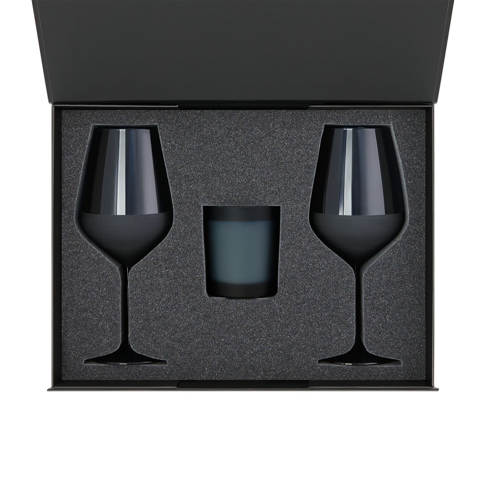 Технические характеристики Подарочный набор свеча Энигма (Enigma) + 2 бокала для вина Сапфир (Sapphire) в черной коробке