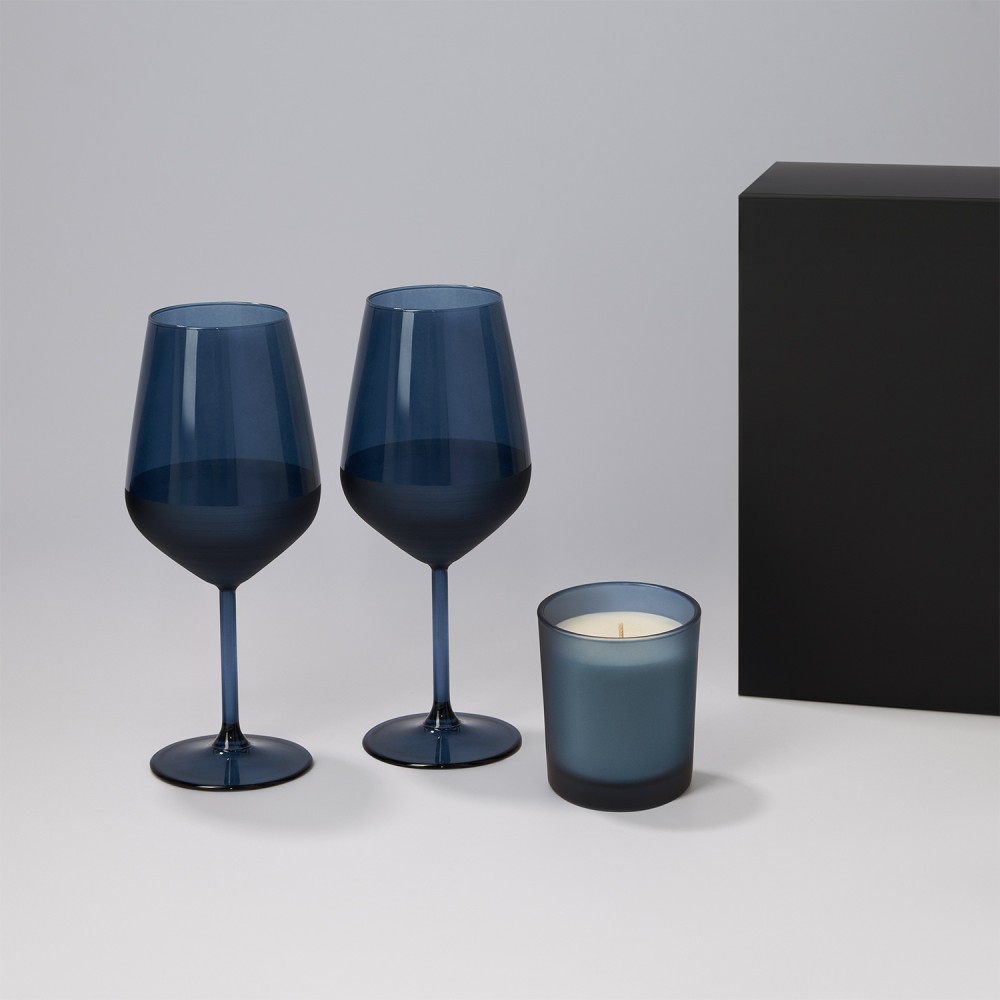 Подарочный набор свеча Энигма (Enigma) + 2 бокала для вина Сапфир (Sapphire) в черной коробке